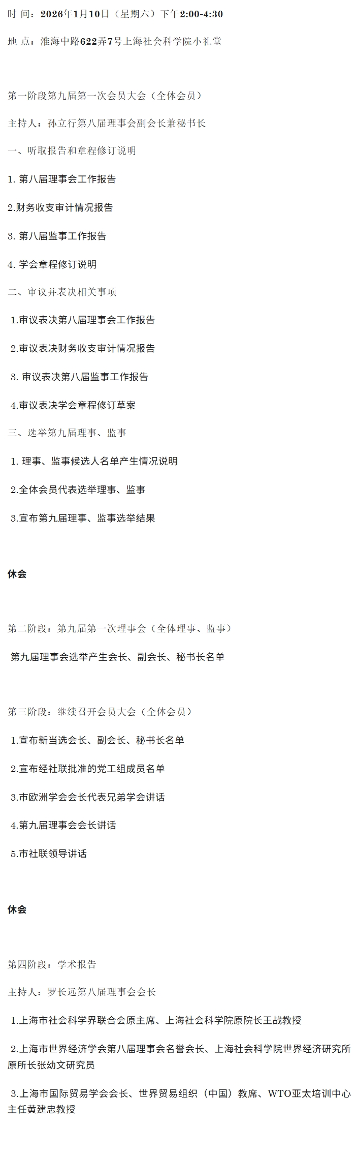 会议议程 |上海市世界经济学会第九届会员代表大会